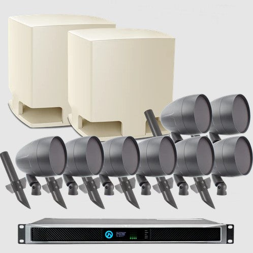2 HS Subwoofers, 8 Landscape Speakers, and Amplifier Package, incl. LEA-CONNECT702, Tan